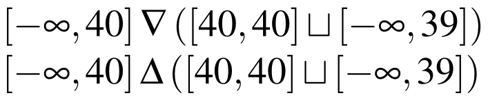 The \nabla and \Delta are specifically used as binary operators in abstract interpretation and, thus, properly wrapped in \mathbin here. Surprisingly, they have different width (or kerning) in mathptmx, as clearly seen from the misalignment of their right arguments.